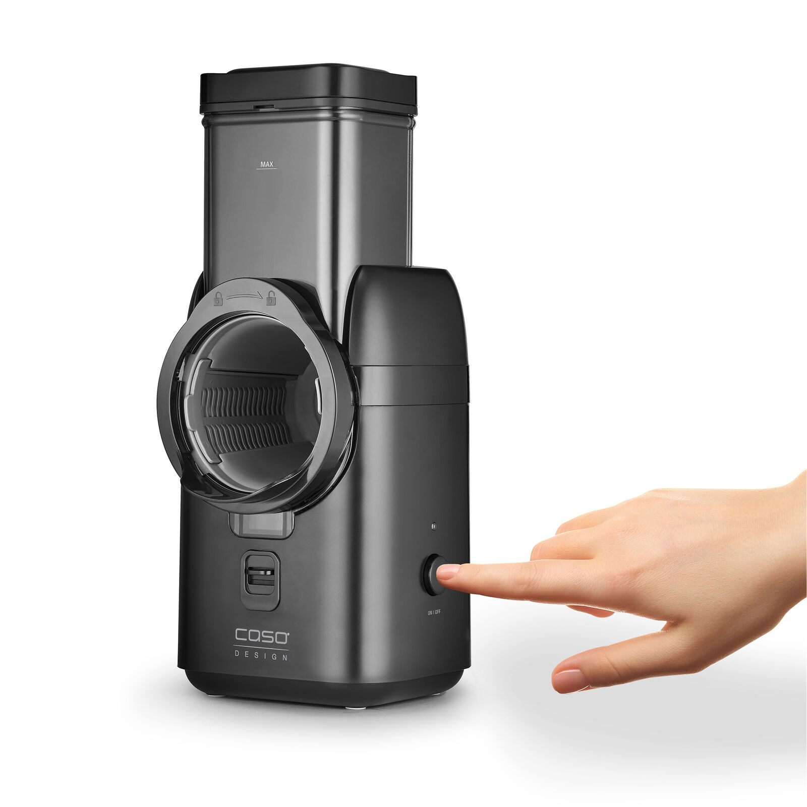 Bring fresh energy to your kitchen routine with the CASO MultiSlicer. This electric 5-in-1 multi-grater combines convenience, efficiency, and versatility in a compact device. Whether it’s fruits, vegetables, cheese, nuts, or chocolate – the MultiSlicer effortlessly handles slicing, grating, and shredding your ingredients, making the preparation of delicious dishes a breeze.